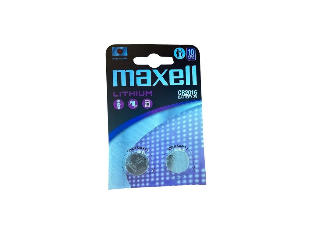 Maxell. Označení CR2016. Elektrochemický systém Lithium. Voltáž 3 V. Baleno na blistru po 2 ks. Rozměr 20 x 1,6 mm.Buďte první, kdo napíše příspěvek k této položce.
