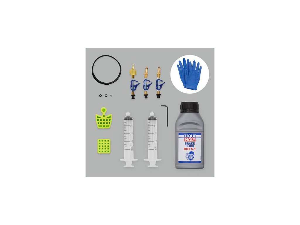Sada Bleedkit Sram Ultimate DOT pro hydraulické brzdy SRAM. Zahrnuje: Tekutina Liqui Moly DOT 5.1 250 ml 2x 20 ml stříkačky Becton & Dickinson 2x sestava M5 1x sestava Edge Náhradní O-kroužky Odvzdušňovací blok pro 2 a 4 pístové brzdy Klíč Torx T10 Oboustranný pásek na suchý zip 25 cm Nitrilové rukavice (velikost L) Kompatibilita: Tato sada je kompatibilní s absolutně všemi hydraulickými brzdami SRAM včetně hydraulických brzd 2017+ s odvzdušňovacím otvorem Bleeding Edge. Kompatibilní také se všemi hydraulickými brzdami Avid (Elixir, Juicy ...) a všemi staršími hydraulickými brzdami Formula(Oro, C1, R1, R0, K24, K18 ..). Není kompatibilní s Formula Cura!Doplňkové parametry