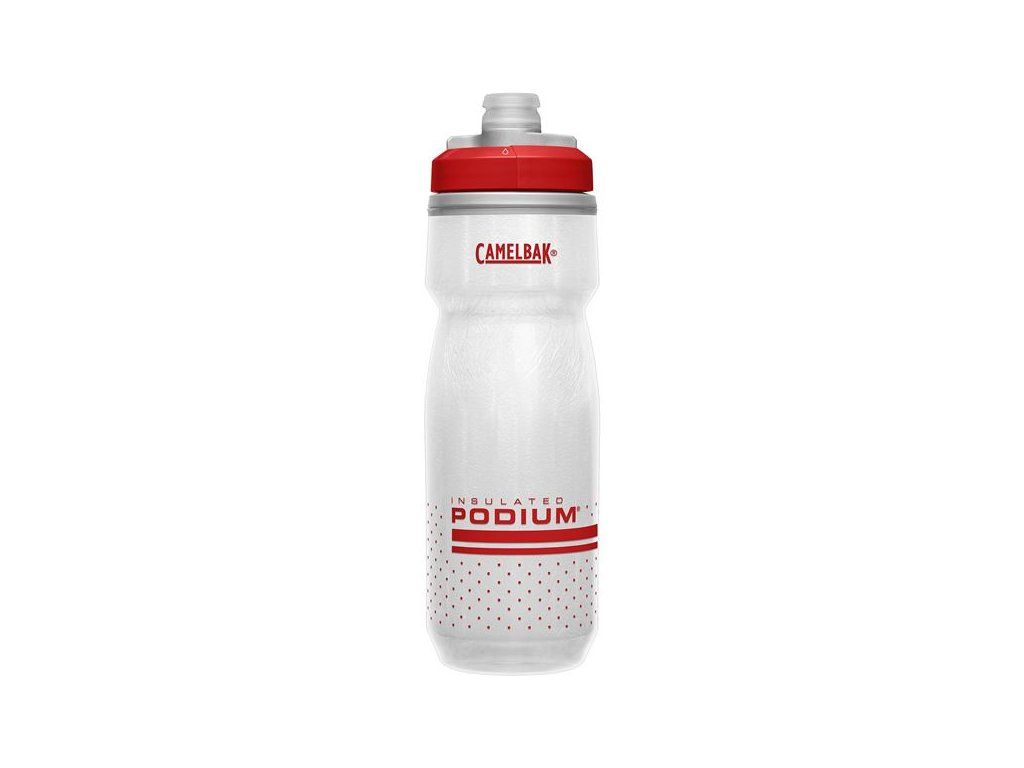 Izolované lahve CamelBak Podium Chill udrží díky dvojité stěně teplotu nápoje 2x déle ve srovnání s normální lahví. Jsou vyrobeny z BPA, BPS a BPF-free polypropylenu, který zajišťuje věrnou chuť nápoje bez plastové pachuti. Díky patentovanému samouzavíracímu náustku Jet Valve z medicínského silikonu voda z lahve nekape na rám. Navíc je vybavena úplným otočným uzávěrem (lock-outem) pro přepravu plných lahví v tašce nebo v autě.Víčko s náustkem se snadno kompletně rozebere a vyčistí. Díky dokonalému tvaru se lahev Podium na kole dobře drží, snadno se mačká a nikdy ji neztratíte z košíku. Podium je prémiová cyklistická lahev, která douhodobě nastavuje laťku kvality.