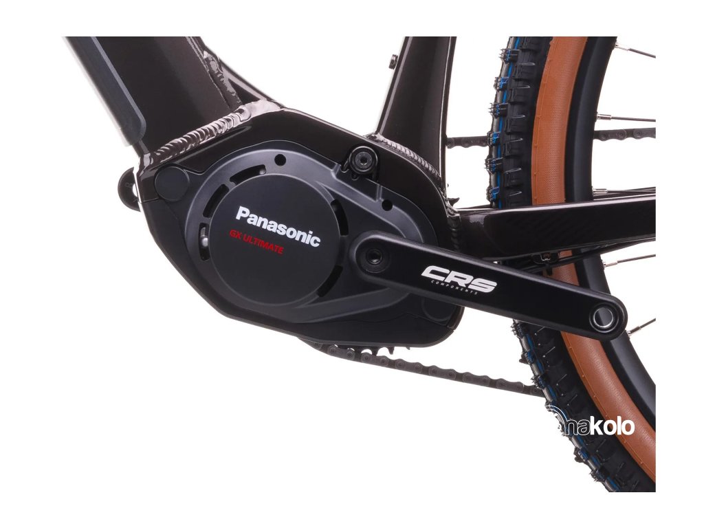 Elektrokolo pohání středový motor PANASONIC GX Ultimate s vysokým točivým momentem 95 Nm. Tento spolehlivý japonský pohon poskytuje dostatek síly i v prudkých stoupáních a díky torznímu snímači reaguje citlivě na sílu šlapání. Váží pouhých 2,95 kg a je ideální pro sportovní jízdu v terénu.