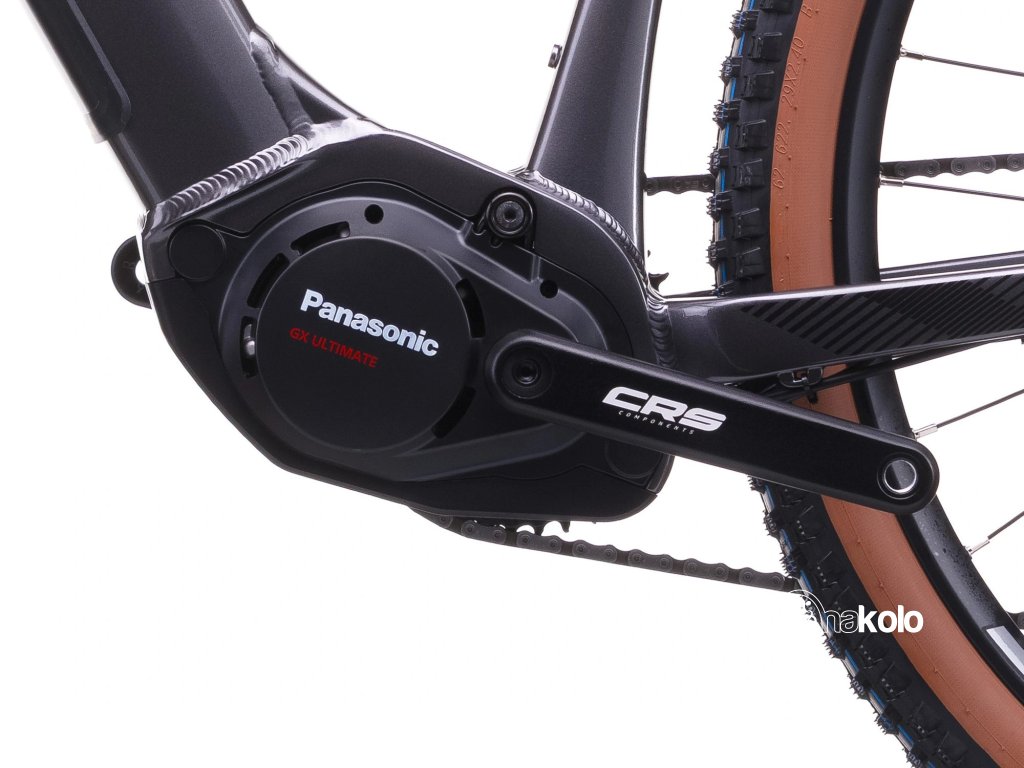 Srdcem kola je špičkový středový motor PANASONIC GX Ultimate s točivým momentem 95 Nm, který poskytuje plynulou, tichou a velmi silnou asistenci i v prudkých stoupáních. Motor reaguje citlivě na tlak do pedálů a umožňuje přesné dávkování výkonu v technických pasážích.