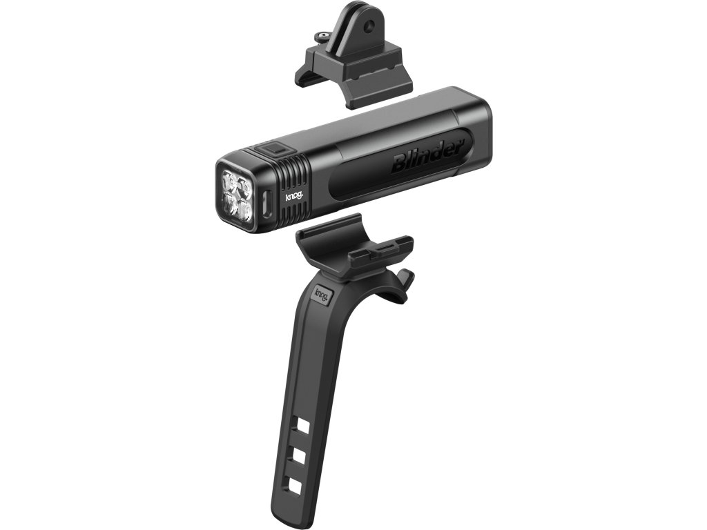 Blinder 900 se dodává se dvěma samostatnými držáky. Pevný a flexibilní gumový držák na řídítka, který je vhodný pro průměry od 22,2 mm do 35 mm, a držák kompatibilní s Go-Pro, který může umístit světlo pod počítač.