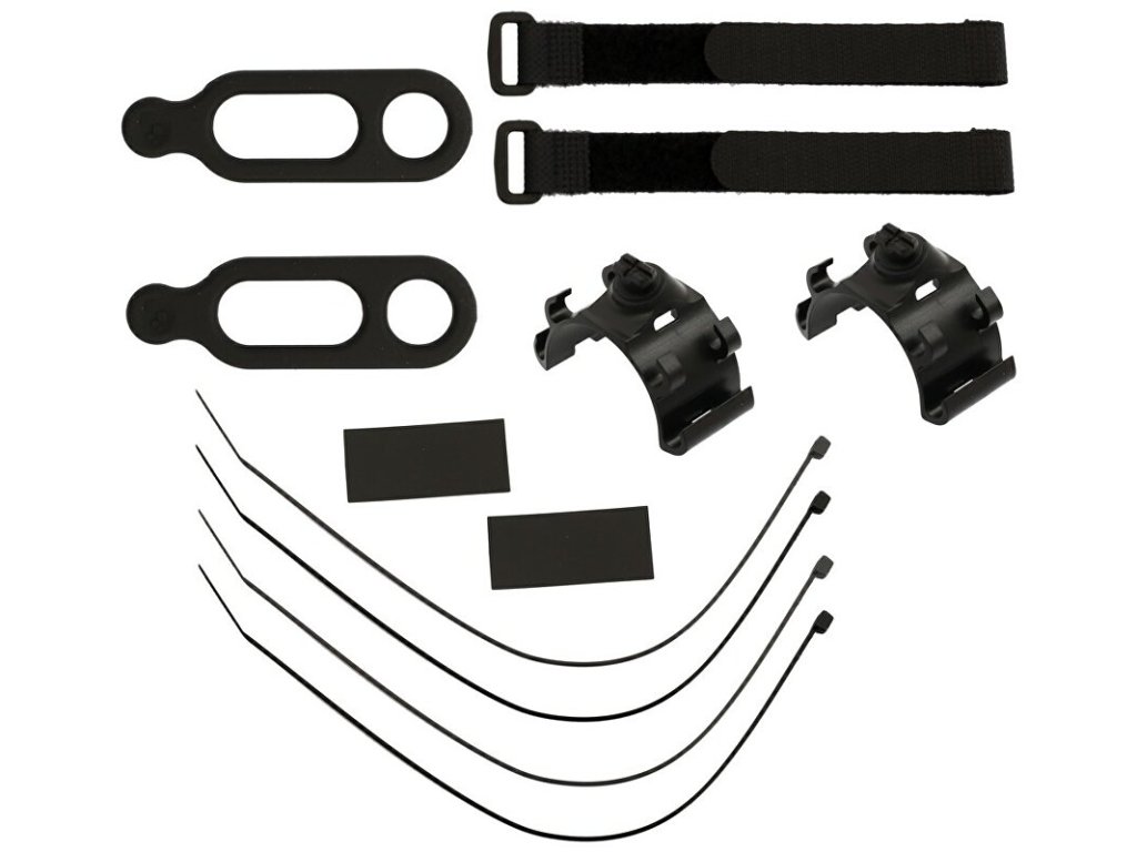 Obsah balení: 2x světlo, 2x držák, 2x podložka, 2x gumový pásek, 4x stahovací páska, 1x Micro USB kabel.
