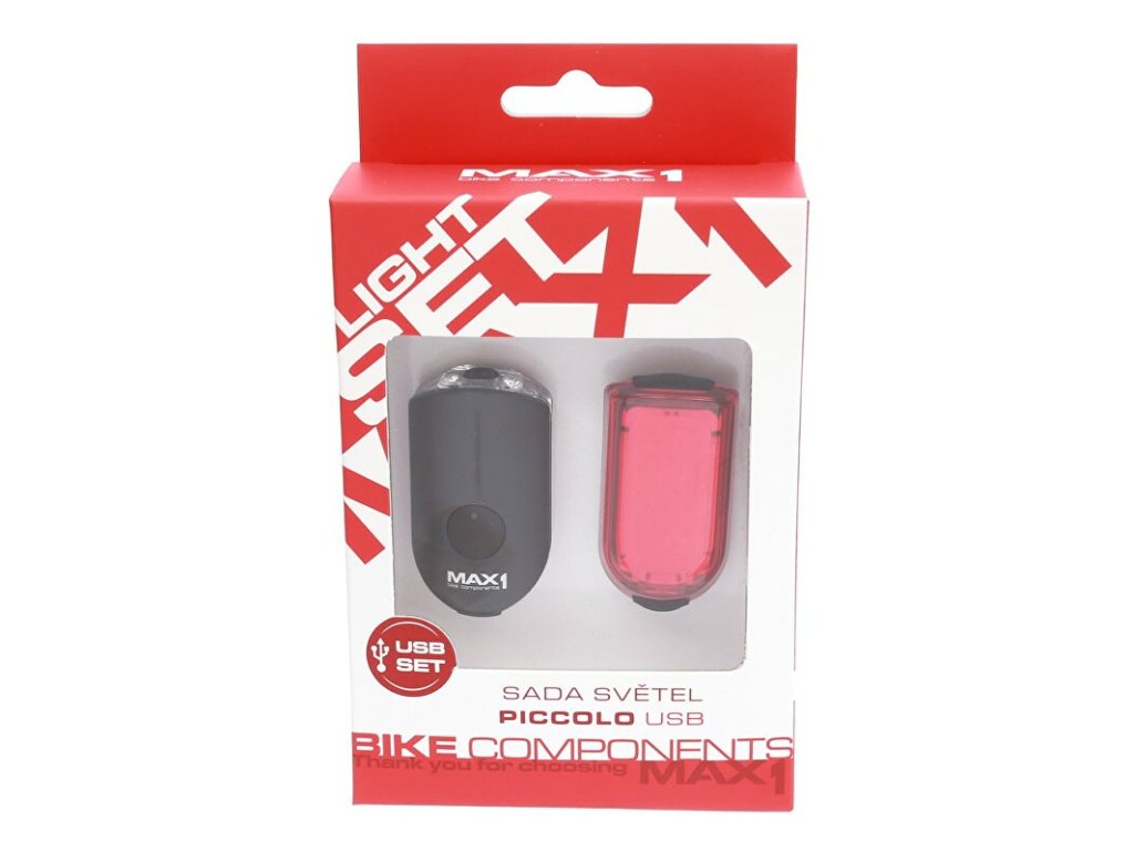 Sada světel MAX1 Piccolo USB přední světlo a zadní blikačka.přední světlo Piccolo USB