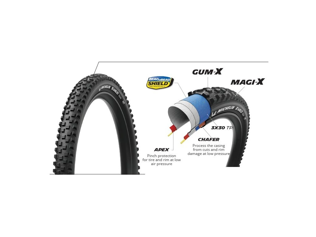Michelin Bike spolupracuje s předními světovými jezdci ve sjezdu, enduru i XC a své pláště vyvíjí tak, aby odolaly těm nejtvrdším podmínkám a zároveň nabídly maximální přilnavost, odvalování a životnost. Technologie jako Magi-X, Gum-X, Racing Line nebo Bead to Bead Shield dokazují, že Michelin si v terénu nebere servítky.