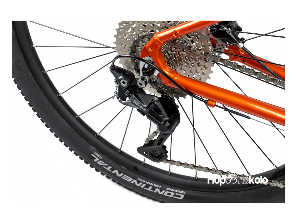 Kvalitní výbava včetně vzduchové vidlice SR Suntour XCR 32 100 mm, pohonu Shimano Deore 1x10, výkonných brzd Shimano BR-MT200 a plášťů Continental Cross King nabízí bezkonkurenční jízdní vlastnosti na jakémkoli terénu.