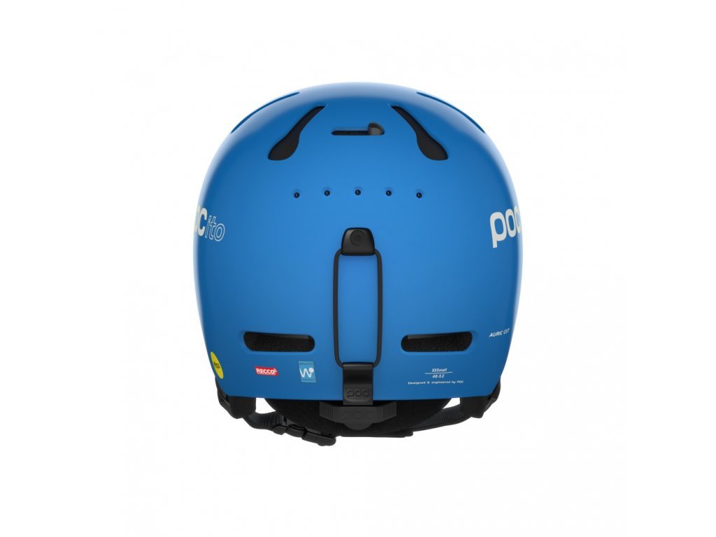 POCito Auric Cut MIPS Fluorescent Blue – dětská lyžařská helma s RECCO a LED panelem