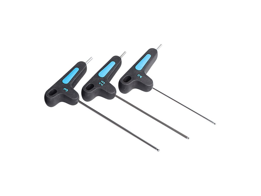 Sada obsahuje 3 ks šestihranných klíčů - T typ ve velikostech 2 / 2,5 / 3 mm. Díky gumové rukojeti se nářadí dobře drží a ovládá.Doplňkové parametry