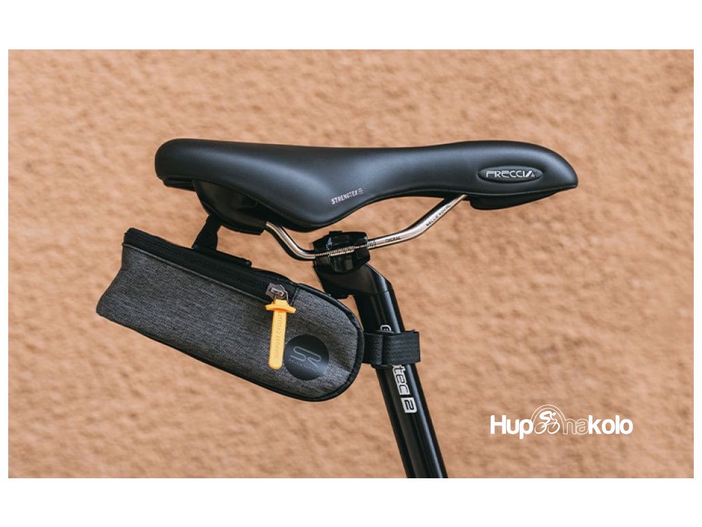 Díky Integrated Clip Systemu lze brašnu během pár vteřin nacvaknout k většině sedel Selle Royal. Pro větší jistotu je na spodní straně doplněna páskem na suchý zip, který obepne sedlovku a zabraňuje pohybu brašny během jízdy.