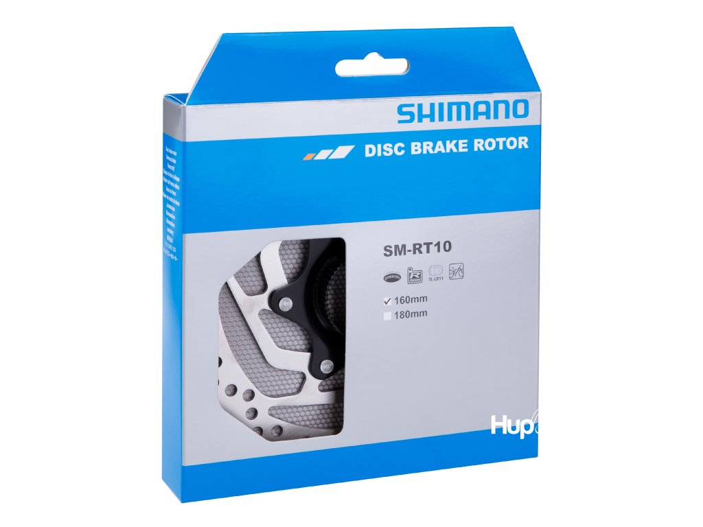 Brzdový kotouč Shimano SM-RT10 o průměru 160 mm je určen pro kotoučové brzdy s uchycením Center Lock. Kotouč je kompatibilní pouze s Resin (polymerovými) destičkami a poskytuje spolehlivý výkon v běžných podmínkách jízdy.