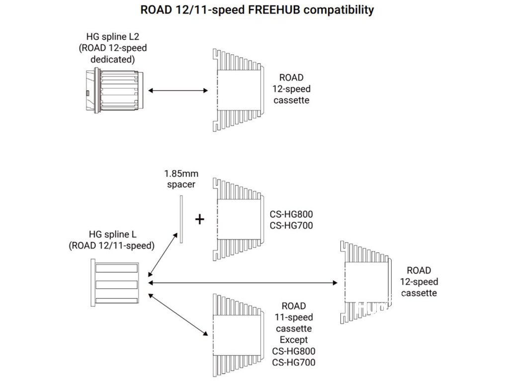 - Kompatibilita: Kompatibilní s HG Spline L2 Road 12-speed a HG Spline L Road 12/11-speed volnoběžnými tělesy.