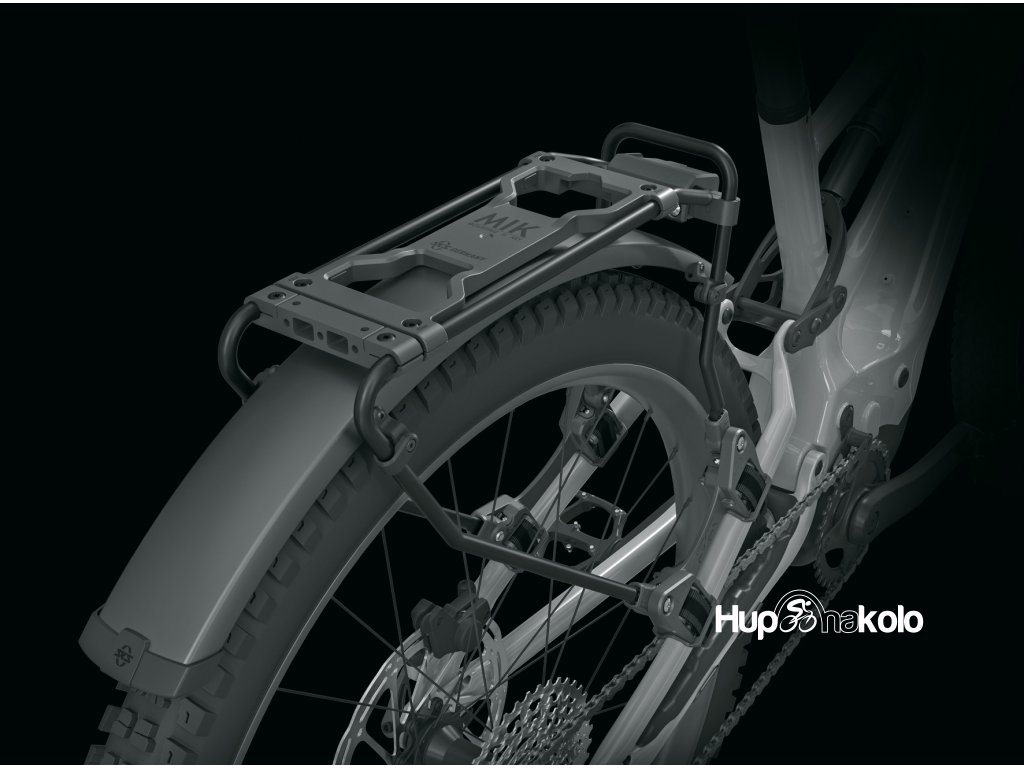 Blatník s černým matným povrchem je diskrétně integrován pod nosič zavazadel. Díky pružné sendvičové konstrukci, v níž jsou ultrajemné hliníkové proužky zapuštěny do plastové vrstvy, je INFINITY UNIVERSAL MUDGUARD mimořádně robustní, tuhý a odolný proti korozi. Blatníky jsou k dispozici ve dvou šířkách profilu 56 nebo 75 mm.