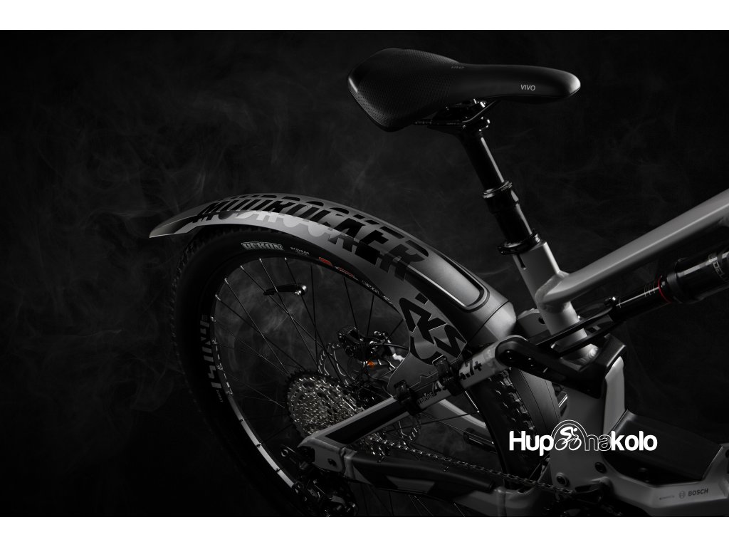 Zadní designový blatník pro celoodpružená kola. Součástí blatníku je prodlužovací díl, který chrání střed, přesmyk a oblast tlumiče. Může být upraven nůžkami podle potřeby, či nemusí být použitý vůbec.