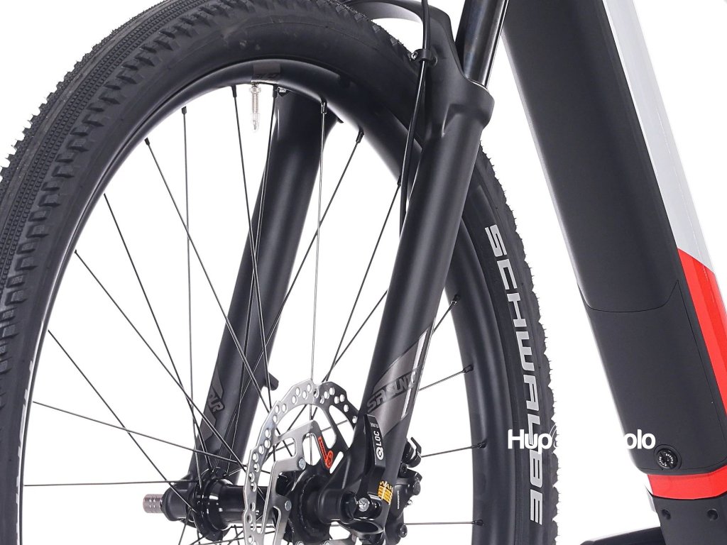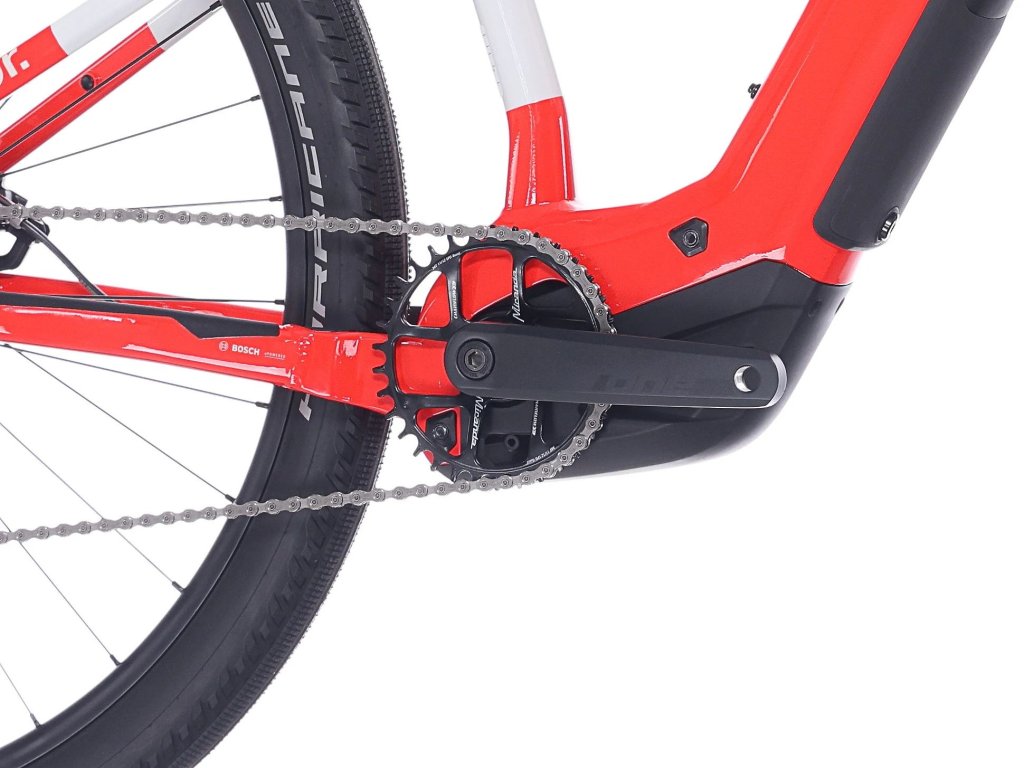 Plně integrovaná baterie Bosch PowerTube 600 Wh zajišťuje dojezd až 140–150 km na jedno nabití. O komfortní jízdu se stará vzduchová vidlice SR Suntour XCR32 se 120mm zdvihem a pevnou osou. Přesné řazení má na starosti Shimano CUES 1×9 a o bezpečné zastavení se postarají hydraulické kotoučové brzdy Shimano MT200.