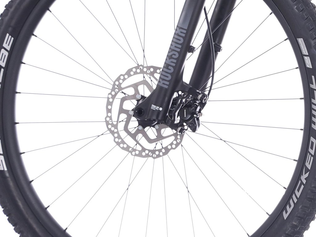 Hydraulické kotoučové brzdy Shimano MT200 poskytují dostatečný brzdný výkon a jistotu v každém počasí.