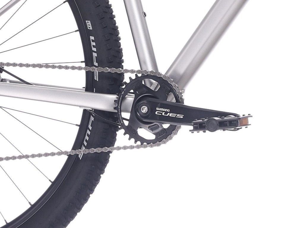 O komfortní jízdu v terénu se stará vzduchová vidlice se 120mm zdvihem, kterou lze snadno přizpůsobit váze jezdce. Nový pohon Shimano CUES 1×9 nabízí dostatečný rozsah převodů (kazeta 11–46 zubů) bez nutnosti přesmykače – jednoduché a spolehlivé řešení pro každého.