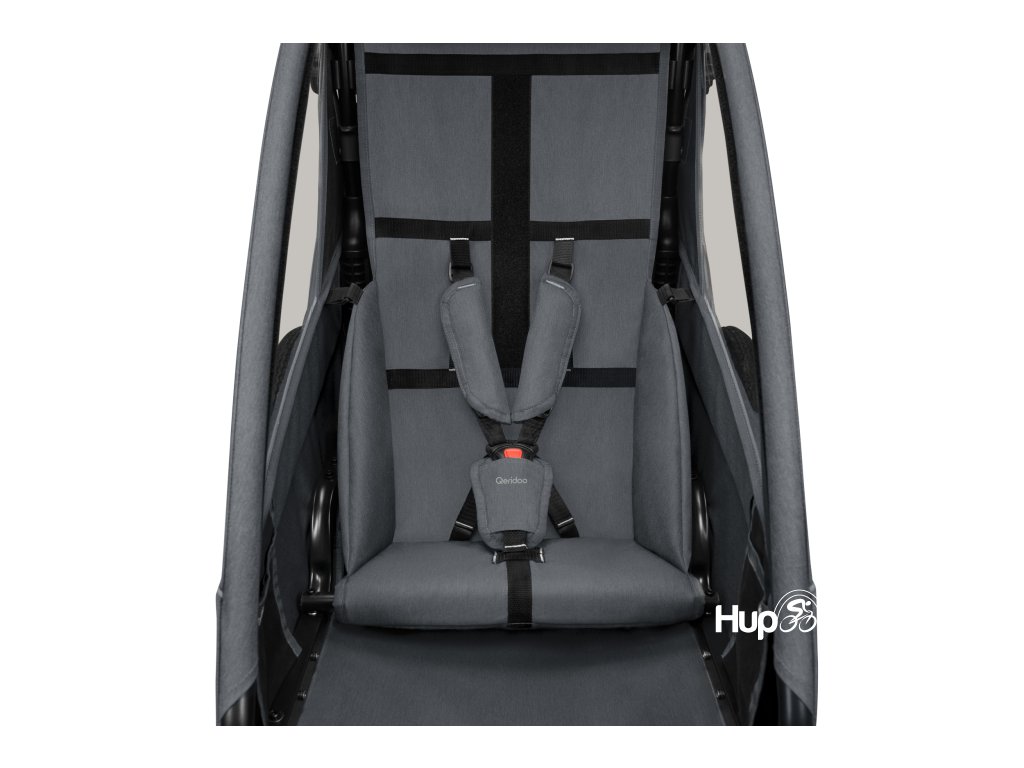 Jednomístný odpružený dětský vozík za kolo Qeridoo Qupa1. Nabízí komfortní sedadlo s adaptivním 5-bodovým pásem a kočárkové kolečko Multiwheel s funkcí aretace. Doporučujeme pro děti s maximální výškou 116,5 cm.